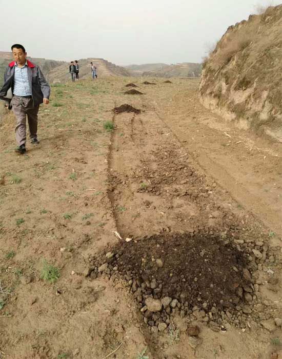 山花爛漫公司小雜糧種植基地負(fù)責(zé)人賀志平、賀利明在基地實地指導(dǎo)農(nóng)民施用農(nóng)家肥
